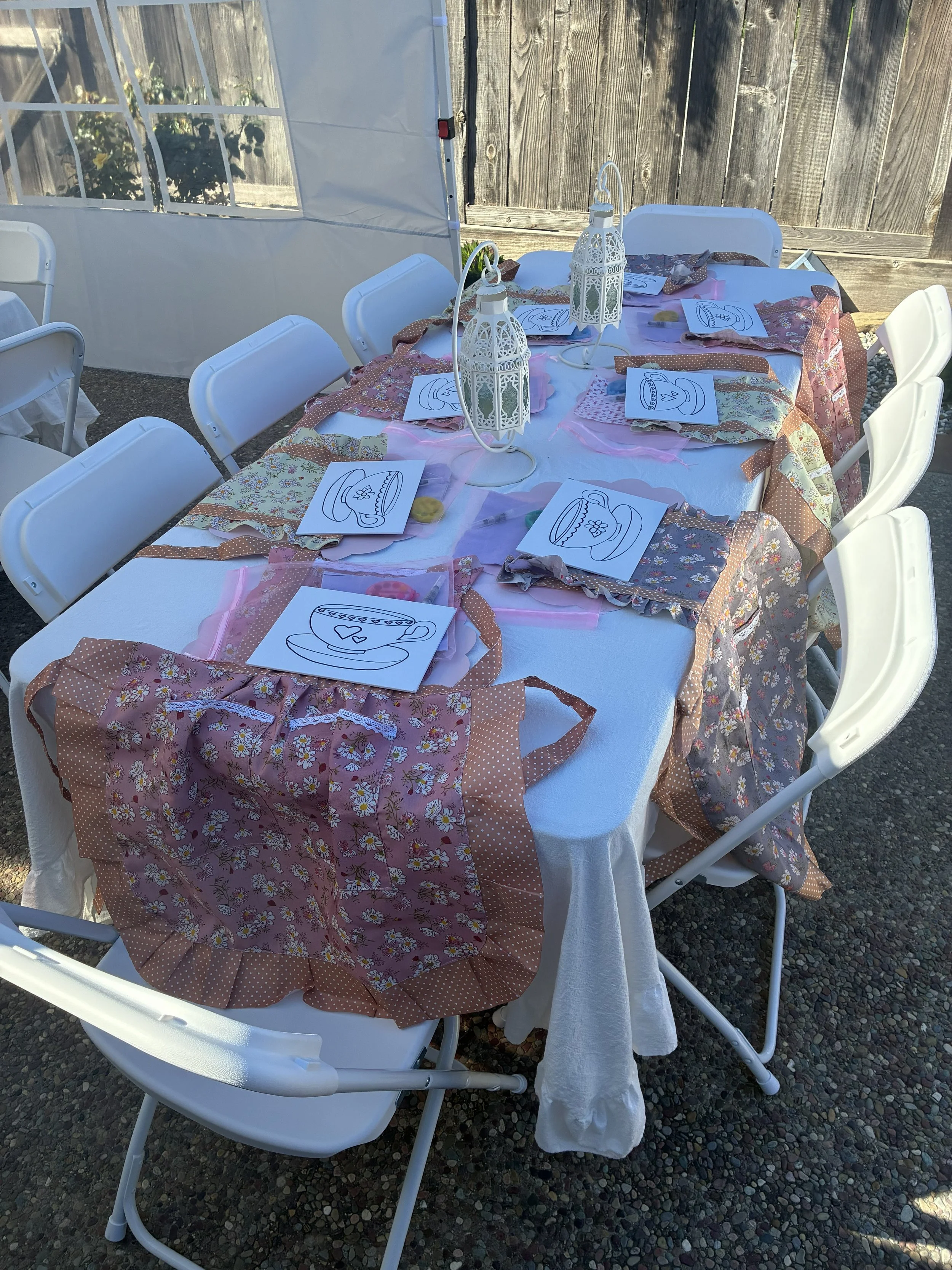 • styled activity table for crafts or paintingYour celebration space will be fully styled and ready for guests, creating a beautiful and memorable setting for your tea party.