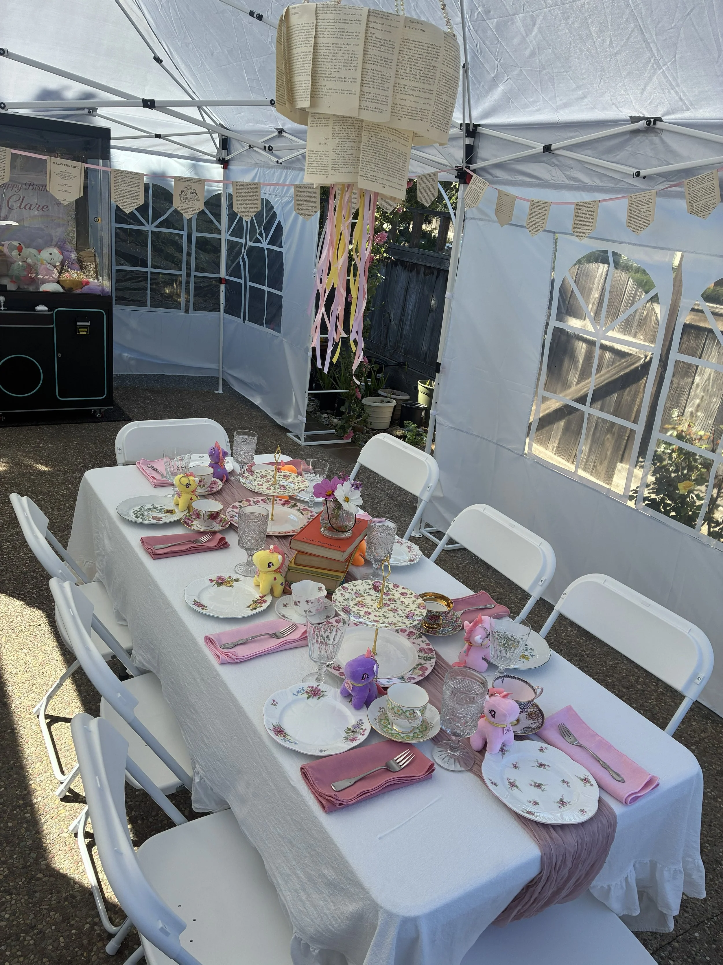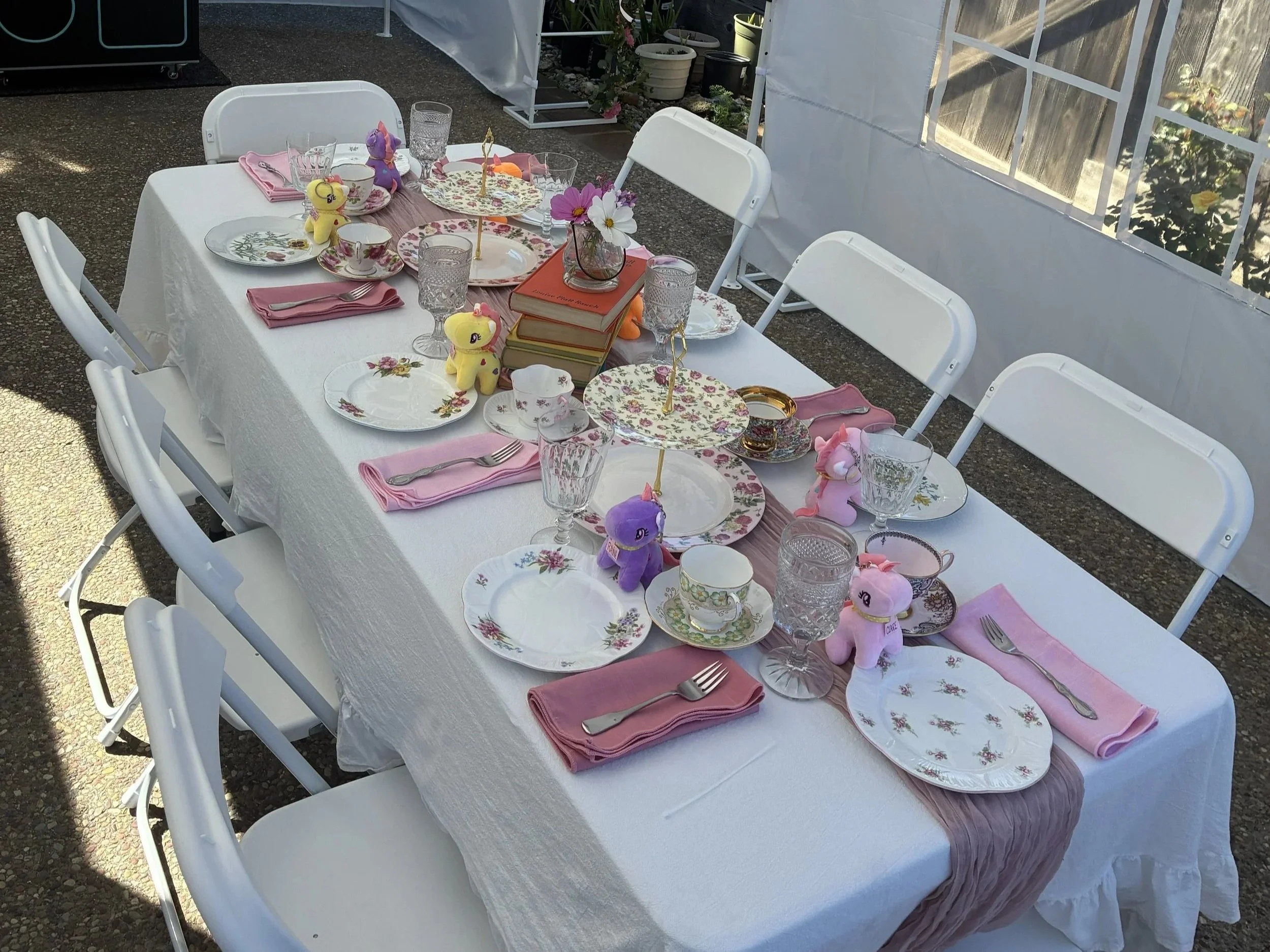 Create a truly magical tea party setting with a beautifully styled garden space designed for celebrating. Our Storybook Garden Tea Party transforms your backyard or event space into a charming tea party scene filled with thoughtful details and immersive décor.